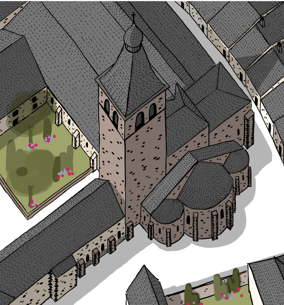 - Le plan cavalier permet de visualiser une commune dans son entièreté. Il met en valeur les façades des bâtiments emblématiques. Les points remarquables (églises, fontaines, ponts) sont révélés et les informations nécessaires pour la visite (parking, directions) sont mises en avant.